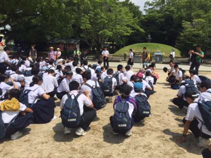 平和公園に到着しました。代表生徒の諸注意の後、班活動のスタートです。