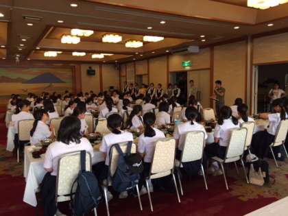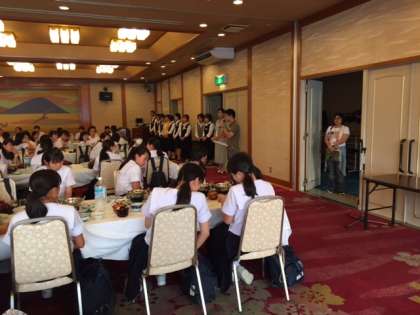 ごちそうさまの後、山田先生から今後の指示がありました。約20分早めの行動になります。