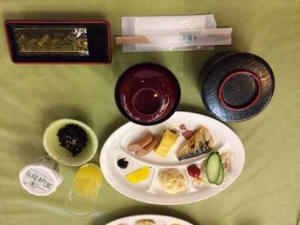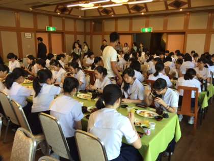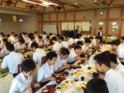 朝食です。いただきます。今日の活動のためにしっかりと食べましょう。