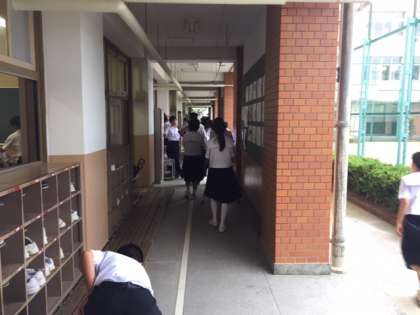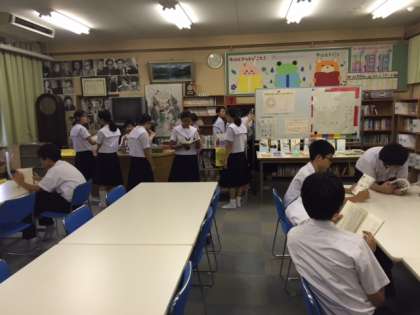今日は昼前から強い雨が降っています。昼休みの様子ですが、廊下は混雑しています。気をつけましょう。図書室は、やはり晴れの日より盛況ですねえ。