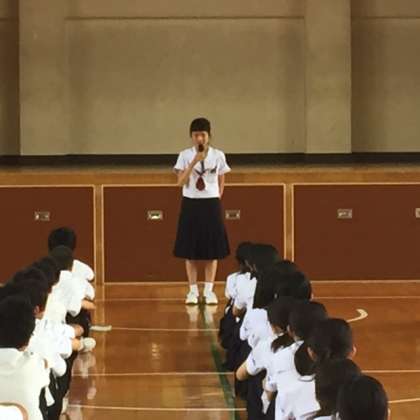 同じく3限目、2年学年集会が行われました。3年生と同じように、まず各学級委員長から1学期の振り返りがありました。