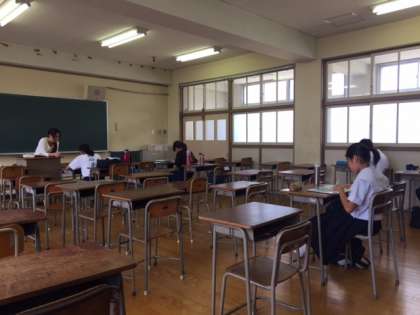 部活動だけでなく、教室では「放課後スタディ」夏季バージョンが行われています。午前10時から数名の生徒が夏休みの宿題など自学自習しています。
