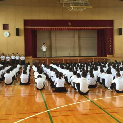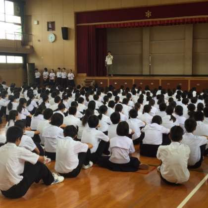 9月5日、全校集会が行われました。高田先生の方から体育大会などの行事があるが、日々の学校生活が何よりも基本となるので、しっかりと授業を中心に日常生活を見直していこうというお話がありました。その後、校長先生より防災週間についての講話があり、本日「880万人訓練」が行われることの連絡もありました。最後に水泳部1年生の表彰状伝達が行われました。