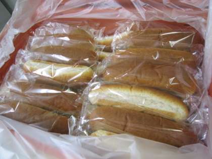 今朝、焼きあげたパンを小袋につめての配付になります。