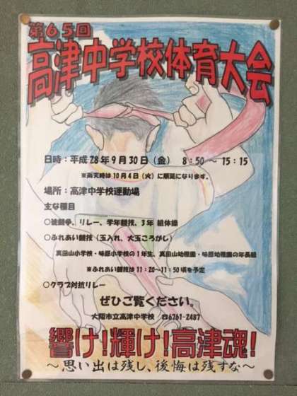 校内に体育大会のポスターが掲示されています。数種類作成されていますので紹介します。