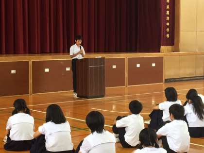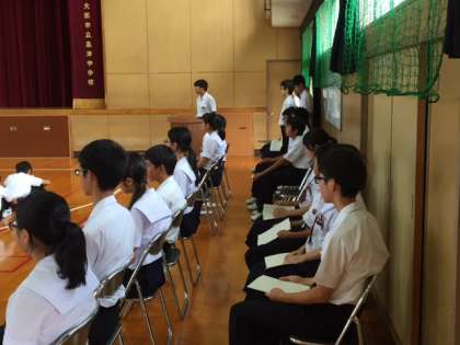 三番目は2組です。幼稚園の先生、生命保険会社、看護事務、ネイリストの聞き取り発表です。保護者の方から2年生の生徒に向けてのメッセージは大変ありがたいものと感じました。