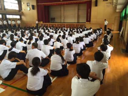 本日、全校集会が行われました。校長先生から体育大会に向けてより一層集中力を高めて練習し、素晴らしい成果をあげてほしい。という話がありました。その後、水泳部と陸上部への表彰状伝達が行われました。