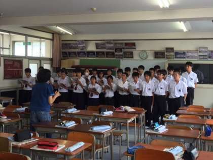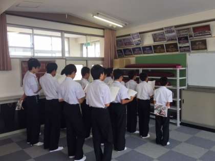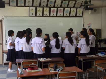 1年音楽の授業の様子です。合唱の練習をしています。「あすという日が」という曲です。まず男女分かれて、そして一緒に。