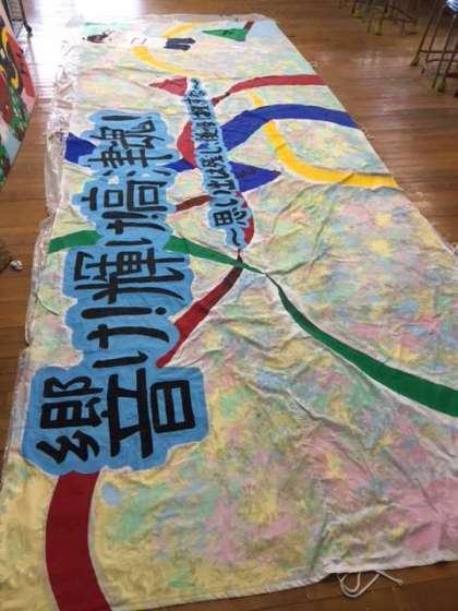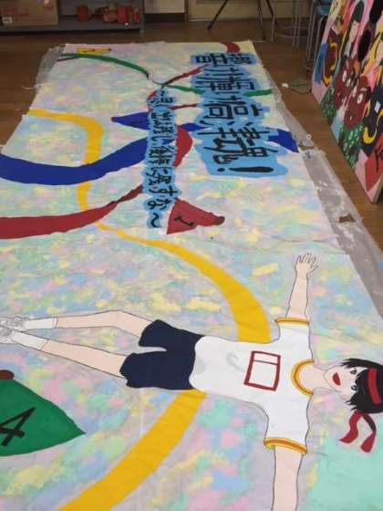 体育大会、文化祭に掲げる横断幕が完成しました。美術部の皆さんが夏休みから約2か月かけて作成してくれました。「響け!輝け!高津魂!思い出は残し、後悔は残すな」のテーマのもと、みんなが一つになって頑張りましょう。