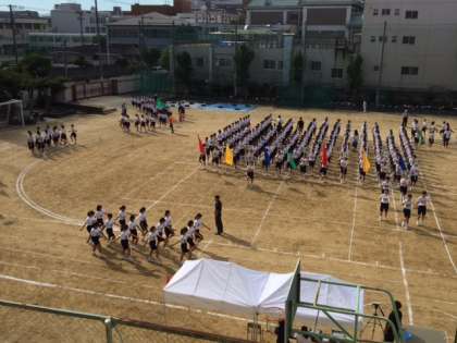 9月27日、体育大会予行が行われました。たいへん蒸し暑い中、本番さながらの練習です。入場行進から開会式、ラジオ体操と気持ちの入った動きをしてくれました。