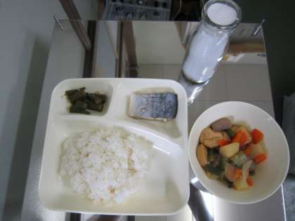 9月27日(火)、本日の給食は、さごしの塩焼き、がんもの煮物、オクラのおかか炒めです。