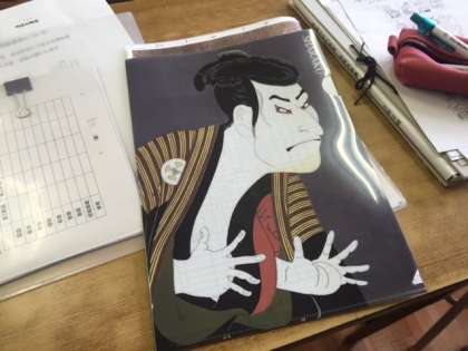 2年生は浮世絵を題材に巨大アートを作成します。細かくパートに分けて、それを拡大して組み合わせて大きな一枚の絵にするようです。上は1組。下は2組の様子です。