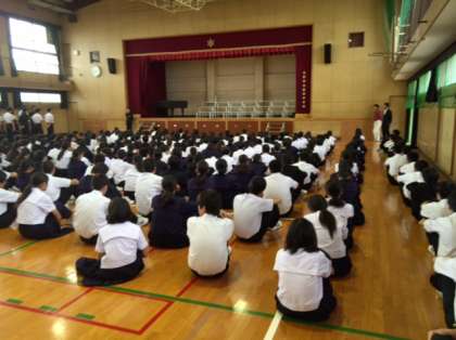 10月17日、全校集会が行われました。今日は学級委員の認証式が行われます。校長先生から自由があるところには必ず責任が存在する。責任を持って役を果たしてほしいという話がありました。