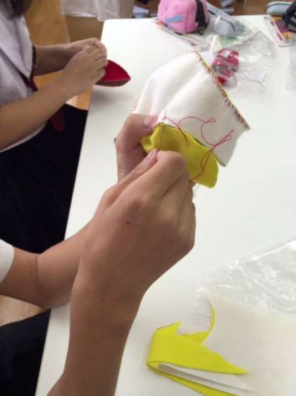 3年家庭科の授業の様子です。ボールキッズを作成しています。どんな作品ができるか楽しみですね〜。