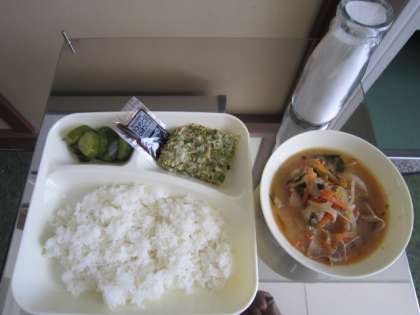 10月20日(木)、本日の給食は、お好み焼き、豚汁、きゅうりの甘酢づけです