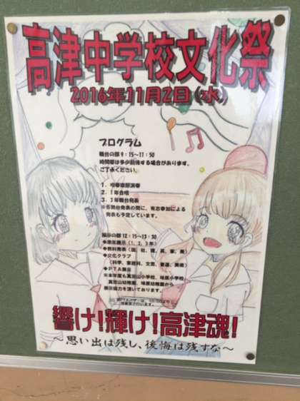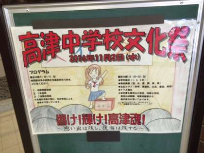 11月2日に開催される文化祭のポスターが廊下やピロティに掲示されています。各学年とも準備が進められているところです。みんなで協力して思い出に残る文化祭にしましょう。