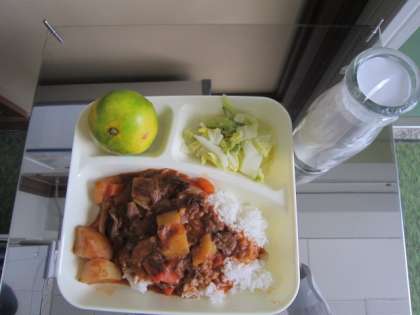 10月26日(水)、本日の給食は、ハヤシライス、白菜のピクルス、みかんです。