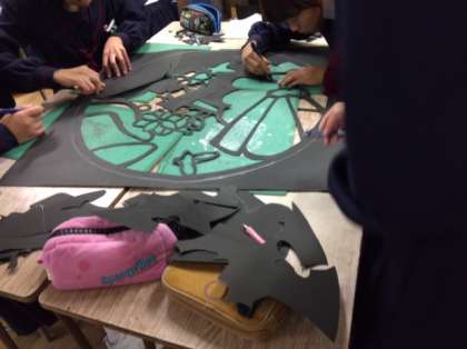 会場内を装飾する絵や切り絵、階段アートなどもいよいよ完成か?