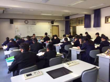 1年英語の授業の様子です。11月7日(月)英検IBAテストがあります。中学校に入って7ケ月、どのくらい英語の力が伸びたかな?しっかりと学習しましょう。
