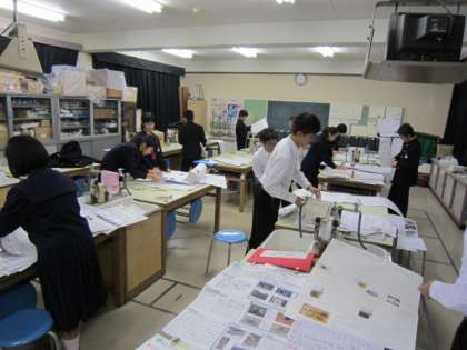 理科室、LL教室、美術室、被服室、それぞれの教室に展示します。