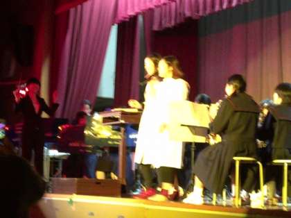 吹奏楽部の演奏に先生方が登場しました。嵐のメンバーとそっくりというわけにはいきませんが、ある意味上回っているところもあるのでは?