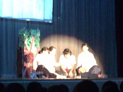 あたり一面が火に包まれてしまいます。たくさんの生徒や仲間が命を落としていきました。助けられずに見捨てしまった友人もいました。「原爆許すまじ」を歌うコーラス隊。自然と涙が流れてきます。