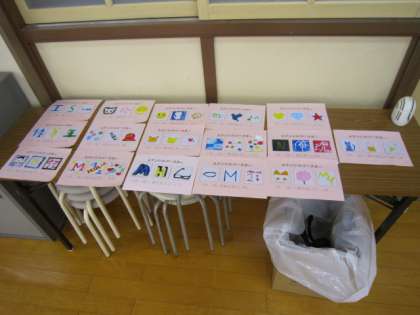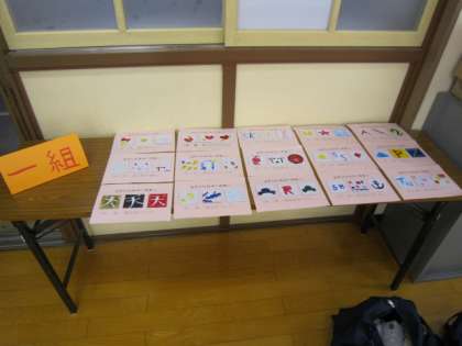 被服室では、1年生の展示、家庭科、家庭科部の作品を展示しました。