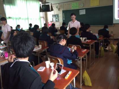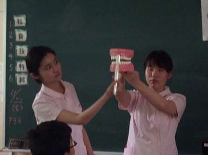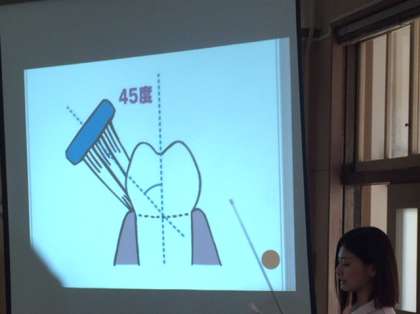 各クラスに分かれて歯の衛生について学んだ後、実際に歯ブラシを使って歯みがき指導を受けました。