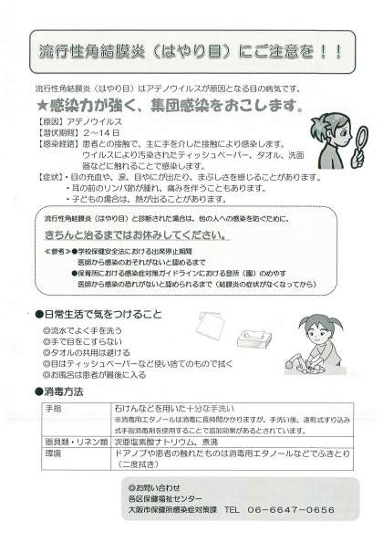 最近、新聞にも掲載されていましたが、マイコプラズマ肺炎や流行性角結膜炎(はやり目)が流行しつつあります。