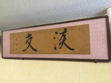 校長室の壁には「淡交」と書かれた約150cmの横長の額がかけられています。書かれた方は、6年前に亡くなられた書家であり作家でもある榊莫山先生です。榊莫山先生は1960年代に真田山小学校で図画工作の先生をしておられたそうです。いつの頃にこの「淡交」を書かれたかは定かでありませんが、著名な方の書が校長室にあることは誇らしいことです。