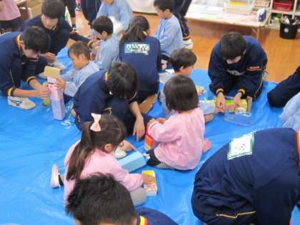 3年1組と2組が3つの班にわかれて、一緒に学習しました。