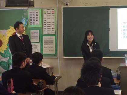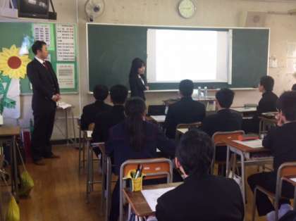 このグループは石堂硝子です。製造業についての話です。以上6つのグループに分かれて話を聞いた後、ワークシートにまとめをしました。