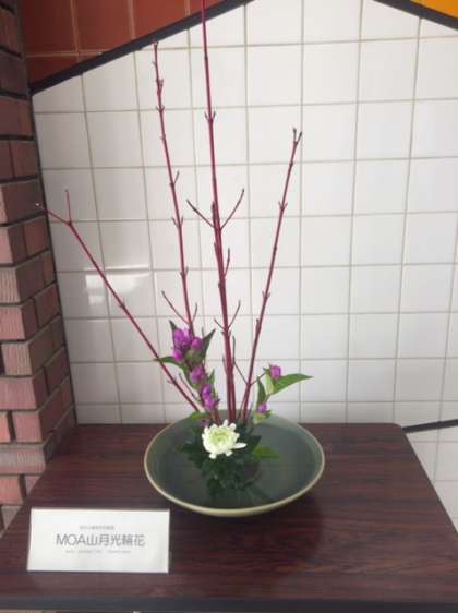 玄関ピロティに先週から新しい生け花があります。何かしら心が癒されますね。
