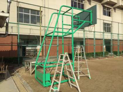 12月5日、グランドにあるバスケットゴールを塗装してもらいました。あざやかなグリーンに変身しました。