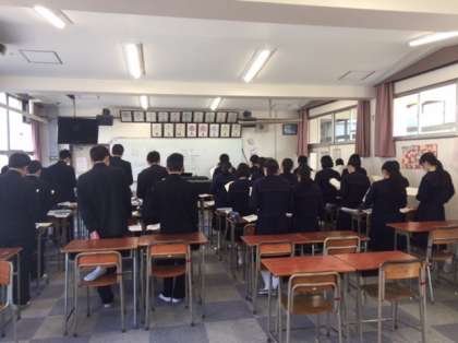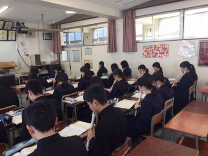 3年音楽の授業の様子です。「早春賦」を歌った後、リコーダーで「Time To Say Goodbye」の練習をしました。