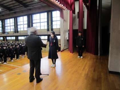 12月13日(火)全校集会にて表彰伝達を行いました。