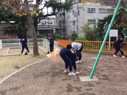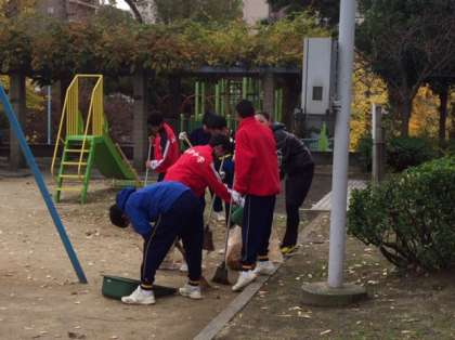 12月14日午後、ふれあい清掃活動を実施しました。1年生と2年生全員で地域の公園6ヶ所を清掃しました。保護者・地域の方も参加して約一時間行いました。上は東高津公園、中は小橋公園、下は真田山公園の様子です。