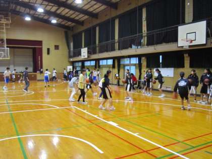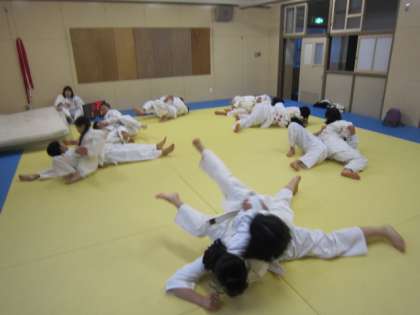 たいへん寒い中、サッカーと野球はグラウンドで、バスケットは体育館、柔道は柔道室(第1学習室)での活動。小学生の皆さんは、元気いっぱい。