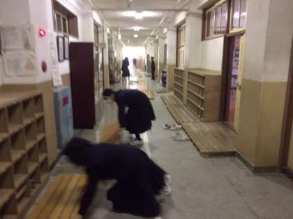 終業式のあと、全校一斉に大清掃を行いました。一年の締めくくりにみんなで学校を美しくしましょう。