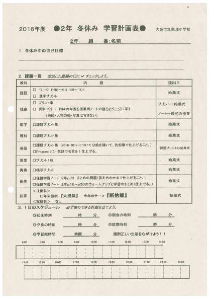 冬休みの宿題 2年生・3年生
