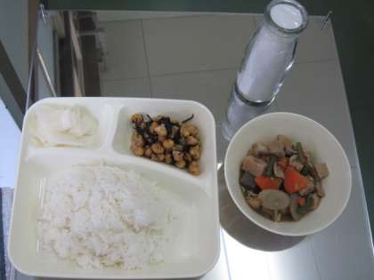 1月18日(水)本日の給食は、筑前煮、ひじき豆、だいこんのゆず風味です。