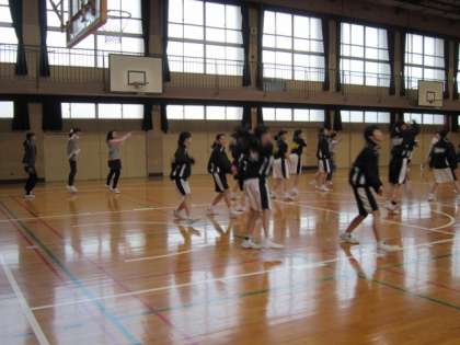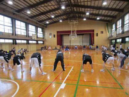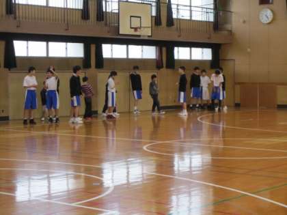 体育館では、バスケットボール。