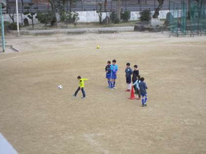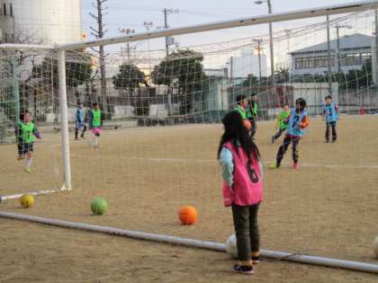 グラウンドで、サッカーの試合を行いました。