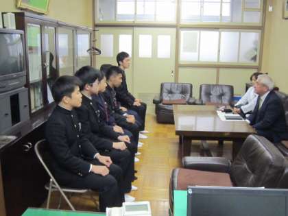 静寂、キンと張りつめた空気の中、いくつもの質問が校長先生から発せられ、1つ1つ生徒が答えていきます。