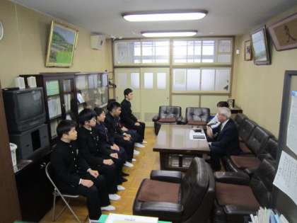 本日は、3年生が校長室で校長先生と面接を行いました。