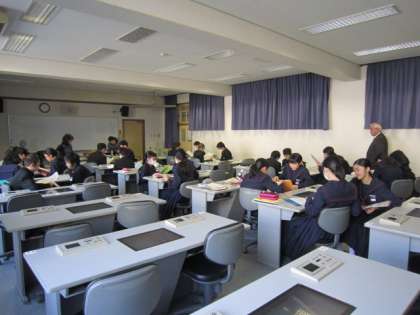 英語教育重点校として3年間指定を受けた本校では、小中9年間を見据えた英語教育活動を推進しています。英語の授業のほとんどを英語で発問・展開し、生徒も英語で解答しています。