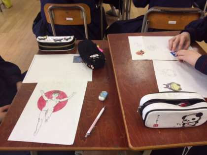 日本や大阪を象徴するような絵や作品が出来上がりそうです。皆さん、協力して楽しいものを作りましょう。