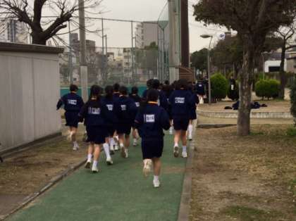 5時間目は1年1・2組です。これが最終グループになります。かなり冷え込んできましたが、皆さん最後までよく頑張りました。男子のトップは1組のK君で5分07秒で、女子のトップは1組のHさんで5分42秒でした。二人とも全学年のトップにあとわずかおよびませんでした。来年頑張りましょう。