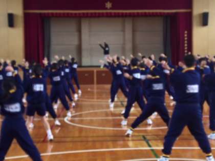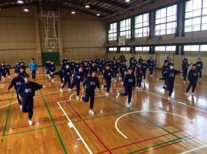 1年体育の授業の様子です。男女共習でダンスの授業です。軽快な音楽に合わせて踊ると自然に身体が動きます。また、リズム感も良くなります。楽しそうですね〜。