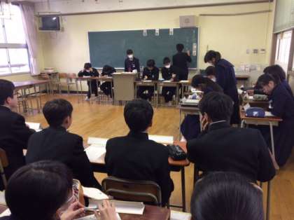 今年度最後の生徒評議会が行われました。3年生は不参加ですが、1・2年生で3月の学校目標などが話しあわれました。